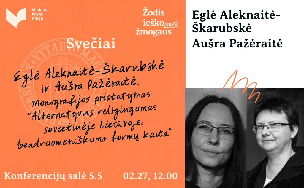 Vasario 27 d., 12.00 val. Konferencijų salė 5.5 vyks Eglės Aleknaitės-Škarubskės ir Aušros Pažėraitės monografijos „Alternatyvus religingumas sovietinėje Lietuvoje: bendruomeniškumo formų kaita“ pristatymas. Filosofas Adas Diržys kalbins autores, religijotyrininką Egdūnas Račius, tyrėją Rositą Garškaitę-Antonowicz.