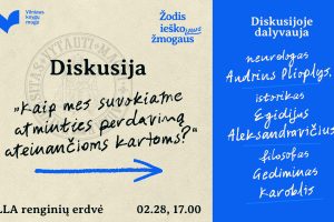 Vasario 28 d., 17.00 val. LLA renginių erdvėje kviečiame į diskusiją „Kaip mes suvokiame atminties perdavimą ateinančioms kartoms?“ Literatūrologė Aurelija Mykolaitytė kalbins neurologą Audrių Plioplį, istoriką Egidijų Aleksandravičių, filosofą Gediminą Karoblį....