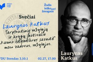Vasario 27 d., 17.00 val. VDU STENDE 3.10.1 svečiuosis tarptautinio rašytojų ir knygų festivalio „Kauno literatūros savaitė“ meno vadovas, rašytojas Laurynas Katkus....
