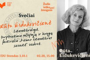 Vasario 28 d., 15.00 val. VDU STENDE 3.10.1 viešės tarptautinio rašytojų ir knygų festivalio „Kauno literatūros savaitė“ vadovė, literatūrologė Rūta Eidukevičienė....